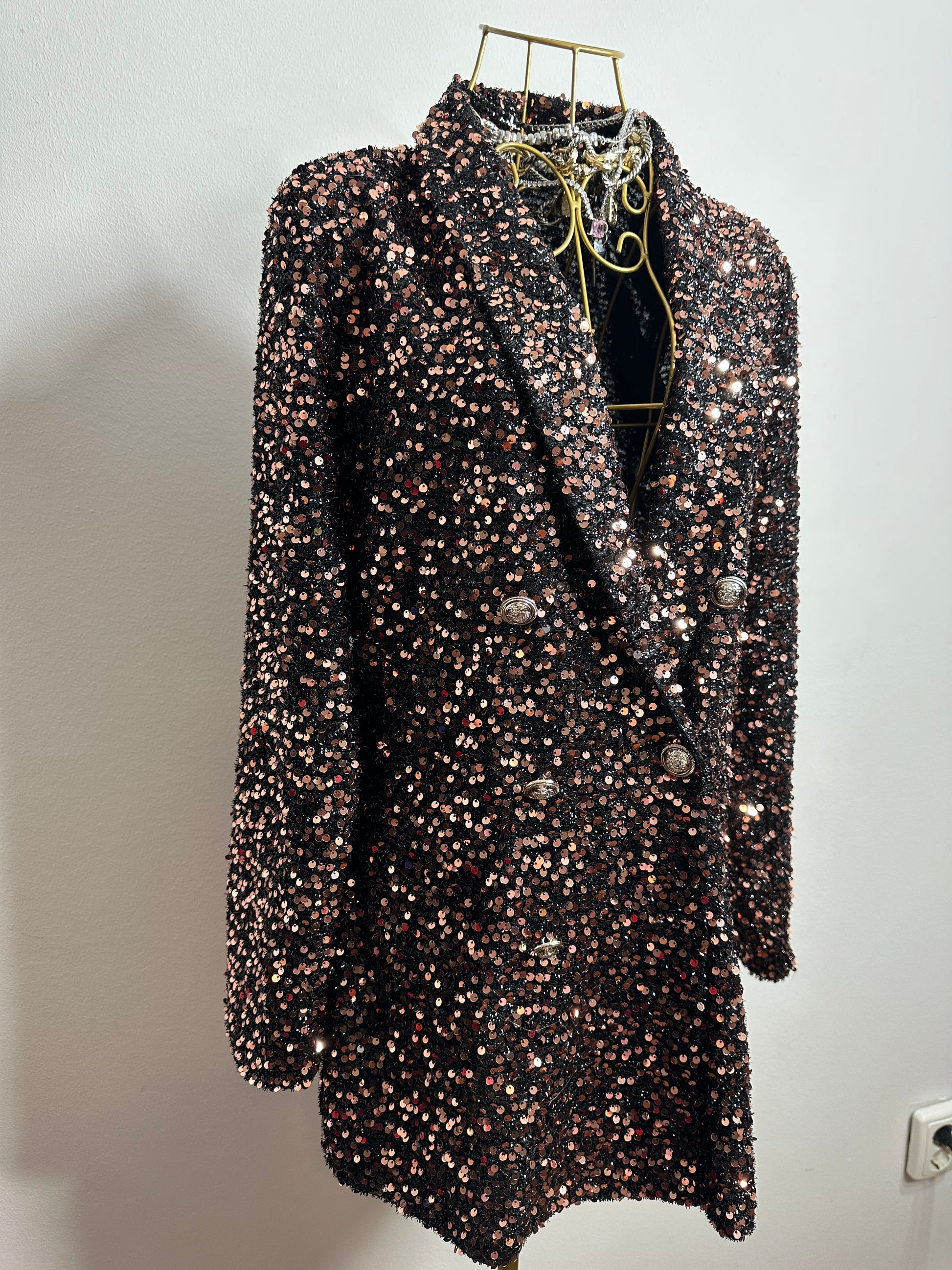 Lungime 87cm. Poate fi asortata si ca tip sacou lung pentru o tinuta casual.