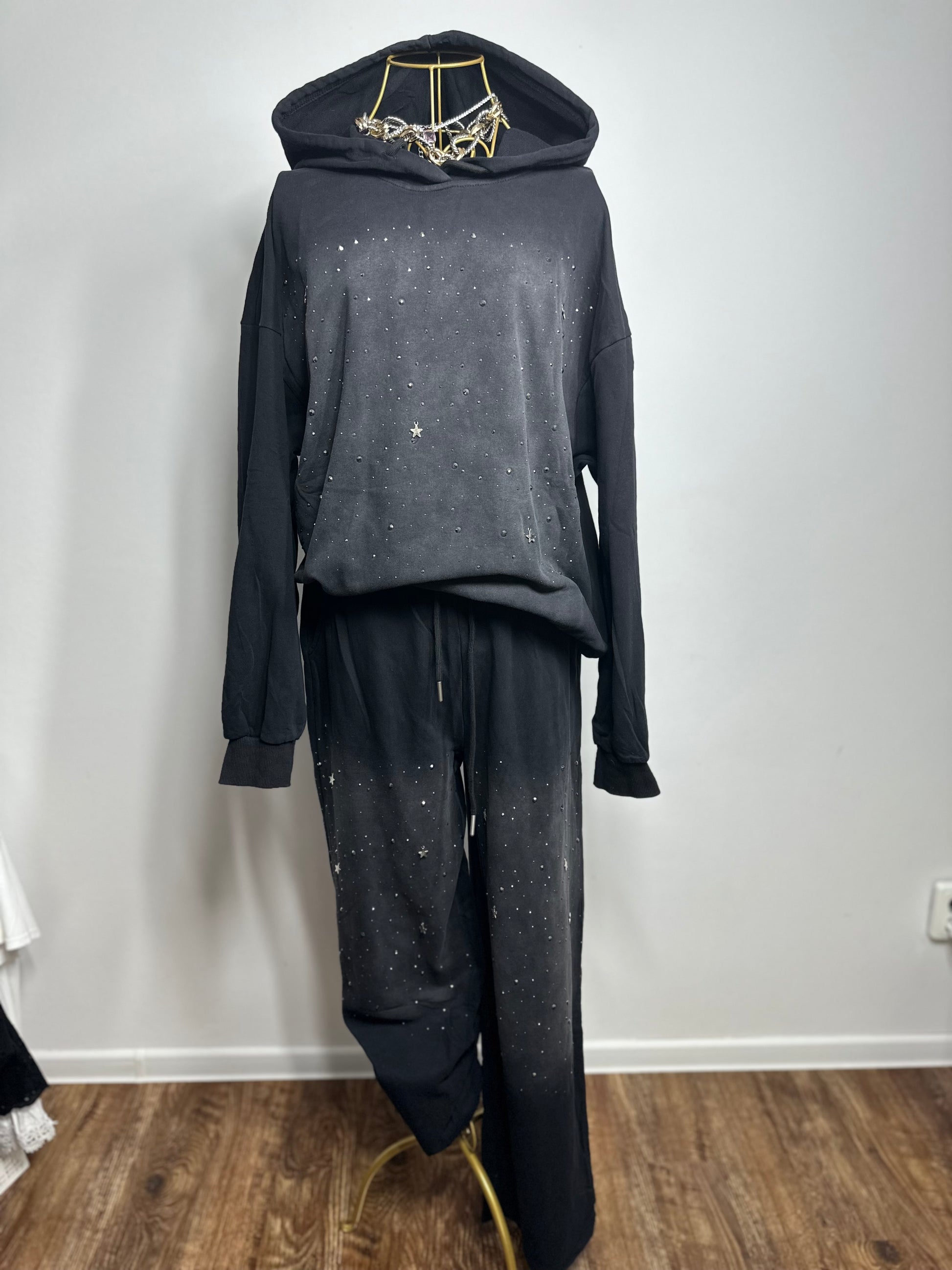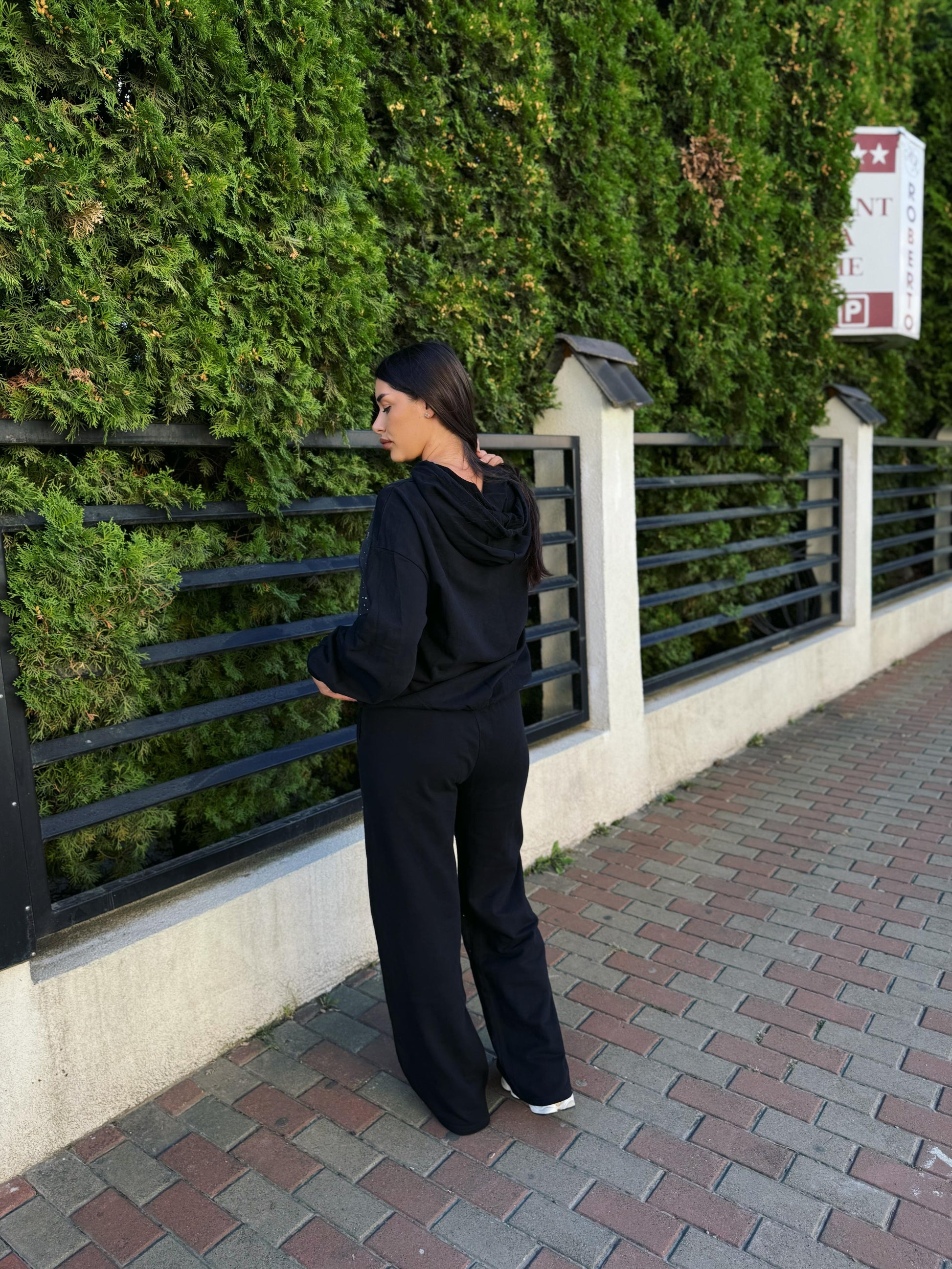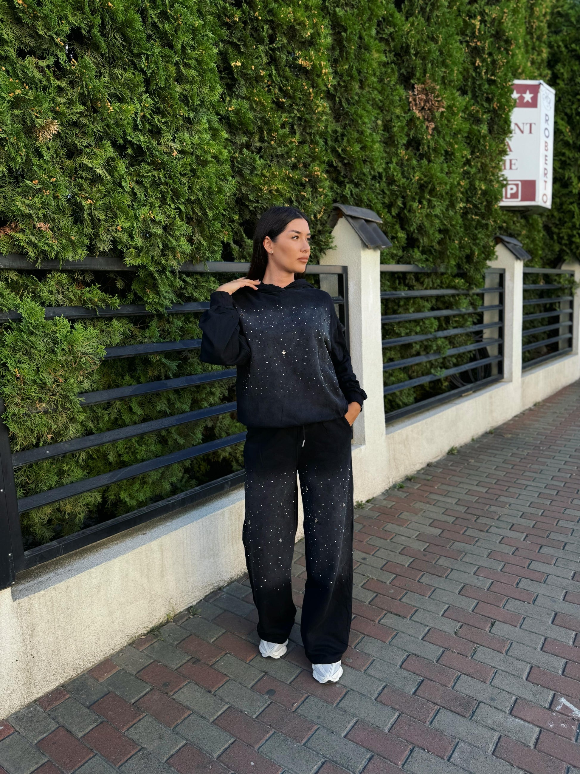 Un outfit care îmbină confortul cu strălucirea! Realizat dintr-un material moale și plăcut la atingere, acest trening este alegerea perfectă pentru momentele în care vrei să te simți comod, dar și să atragi privirile.