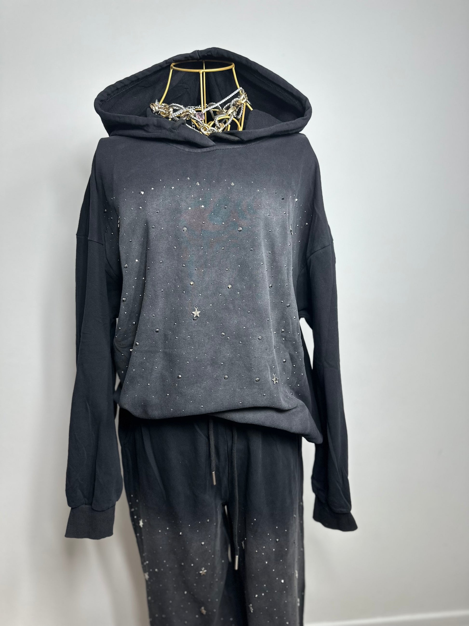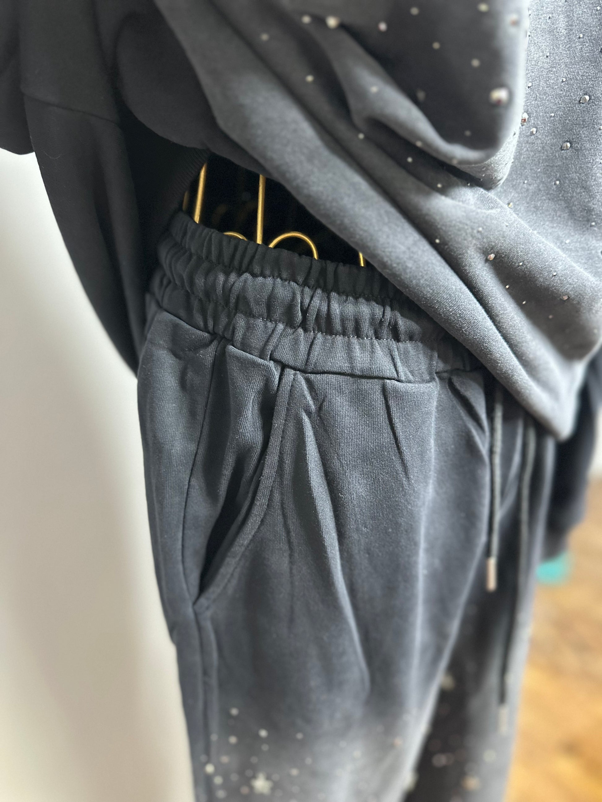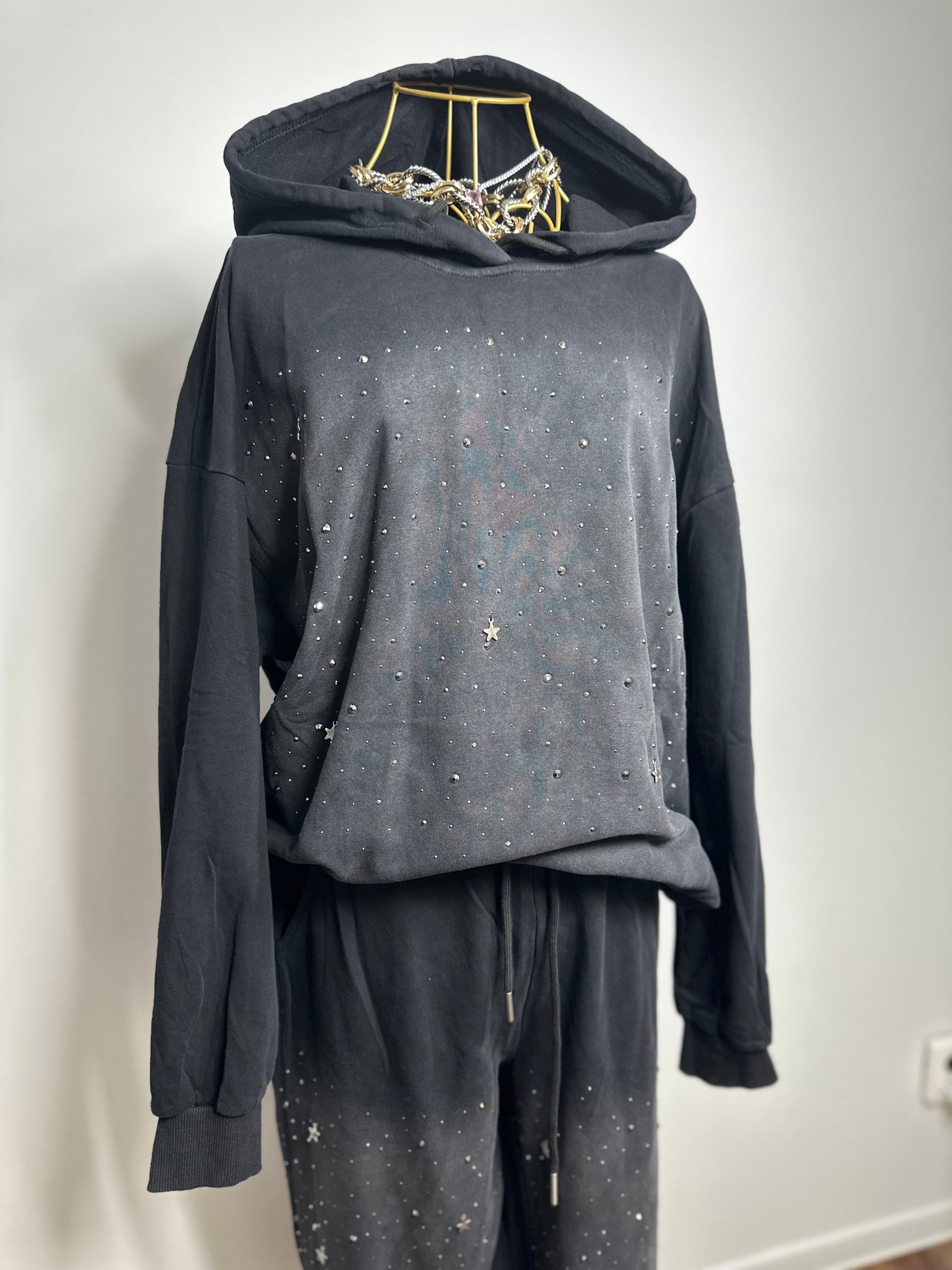 Un outfit care îmbină confortul cu strălucirea! Realizat dintr-un material moale și plăcut la atingere, acest trening este alegerea perfectă pentru momentele în care vrei să te simți comod, dar și să atragi privirile.